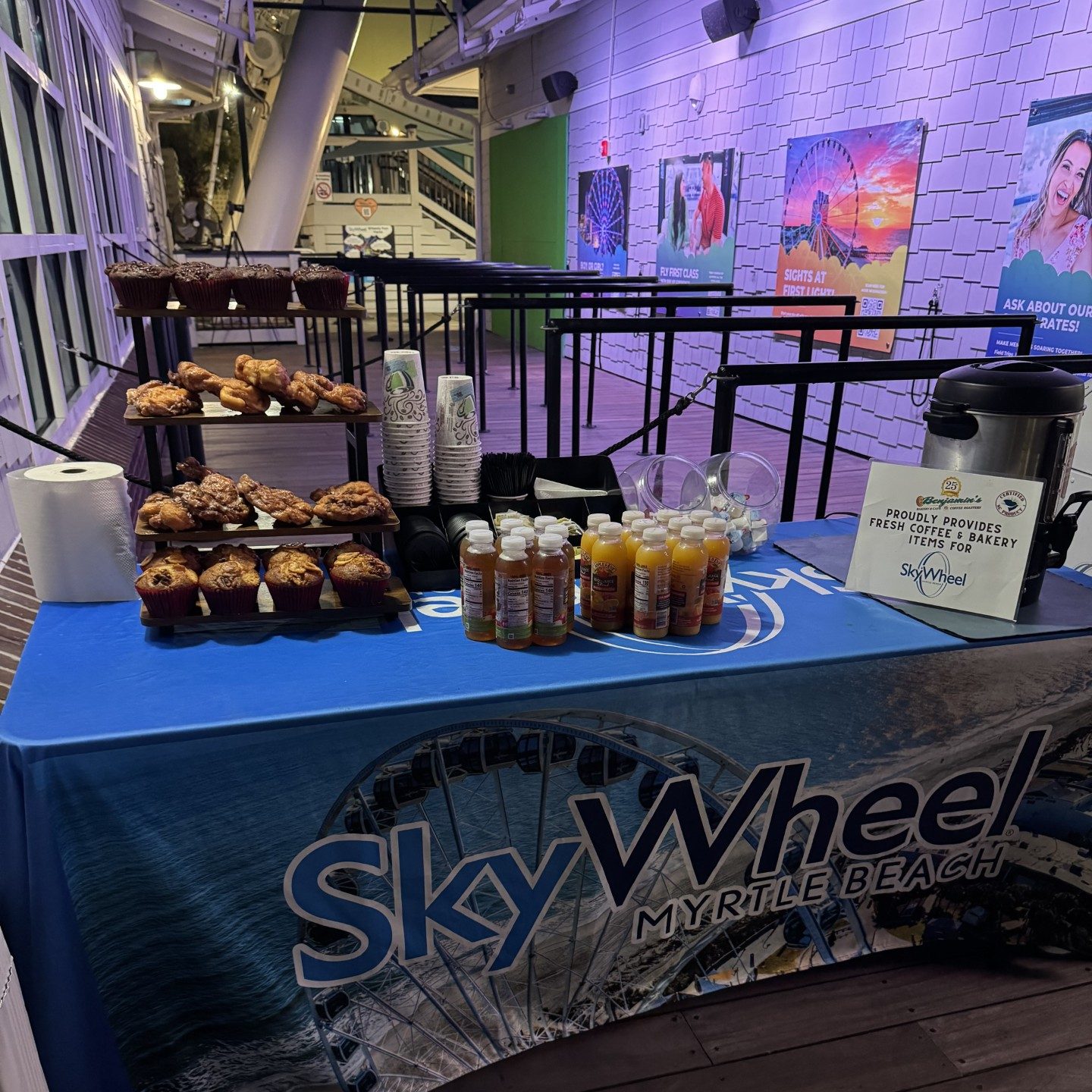 The SkyWheel Myrtle Beach Sunrise Flight, one of our newest flights, is an unforgettable experience that offers stunning sunrise views from 200 feet above the Myrtle Beach coastline. Your ticket is also accompanied by coffee and pastries to go with your 30-minute sunrise flight. Picturesque views from our climate-controlled gondolas will immerse your morning in pure relaxation. Don’t forget your camera, as you won’t want to miss capturing all the beauty this view has to offer!